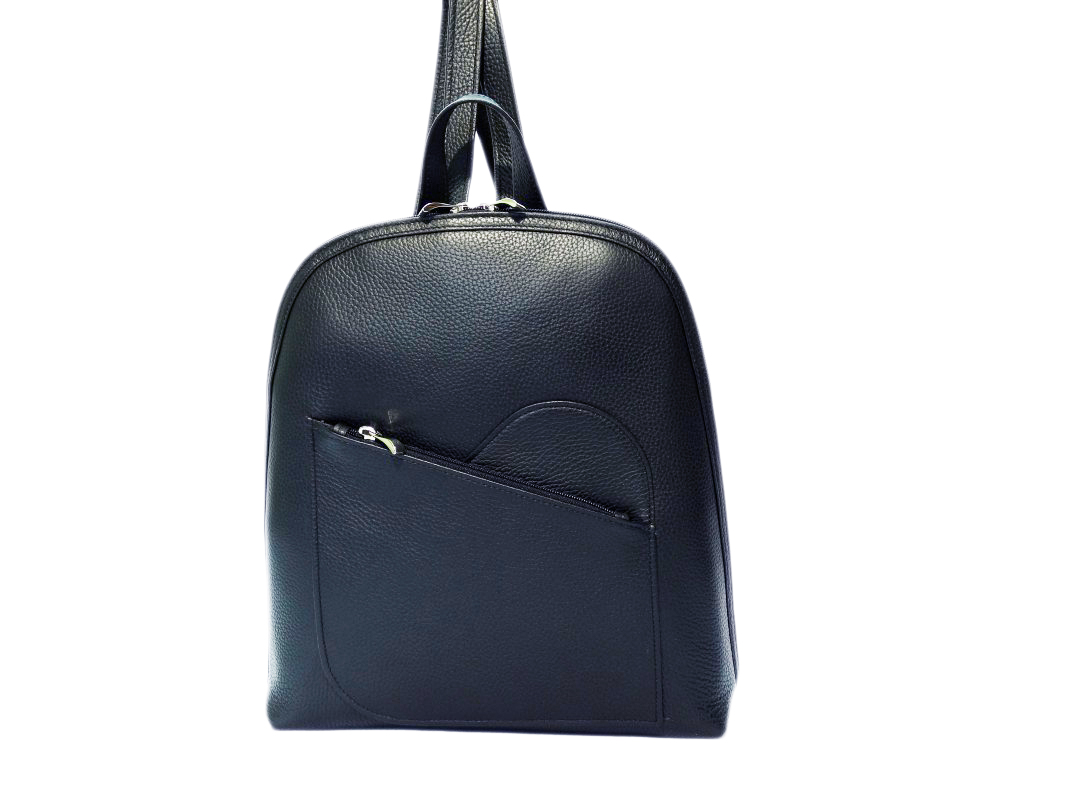 vorne: Einsteckfach und ein Fach mit Reißverschluss