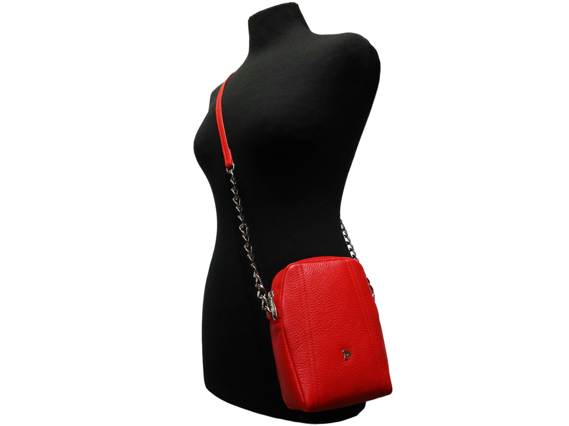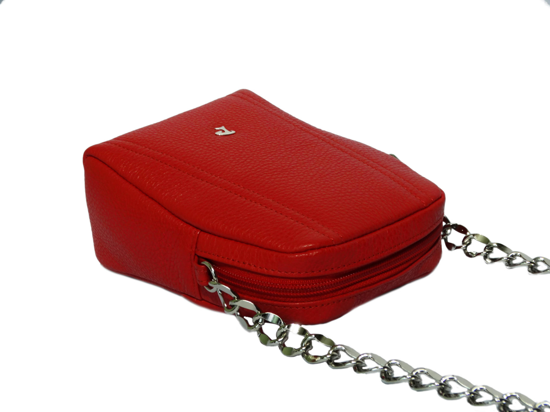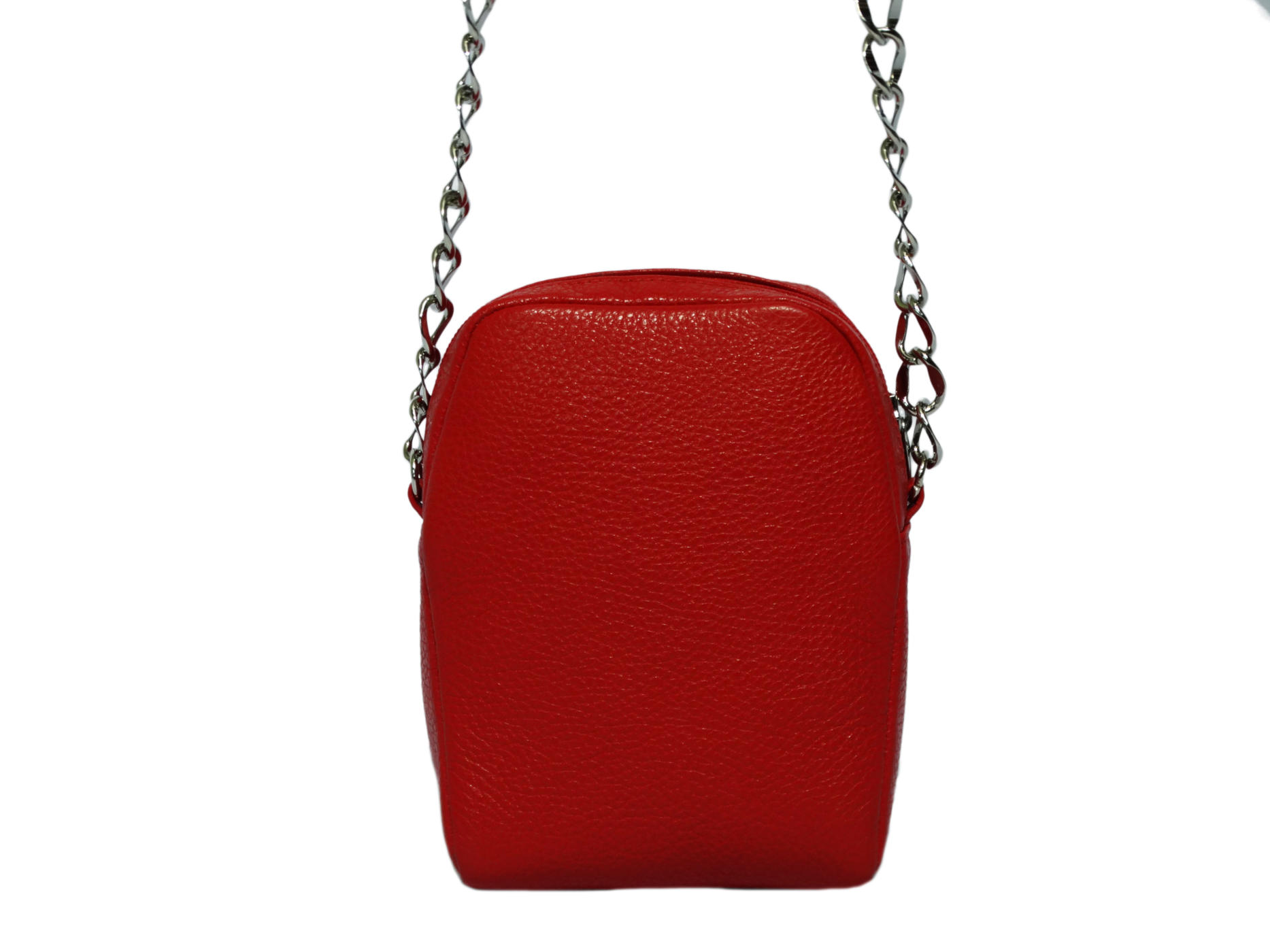 zip closure long leather handle with chain inside slip pocket